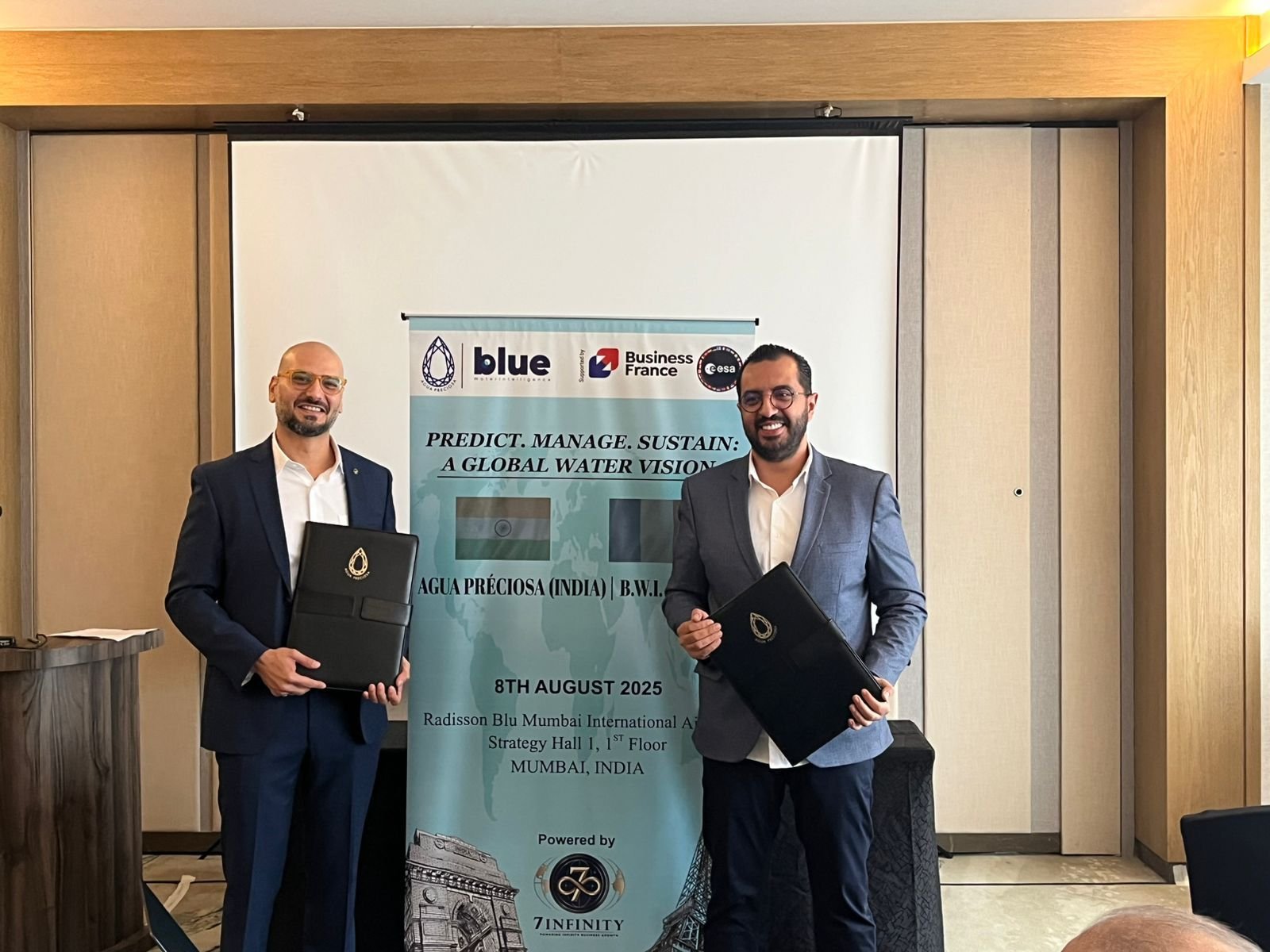 On August 8, 2025, Blue Water Intelligence (BWI) reached an important milestone in its commitment to water sustainability in India by signing a Memorandum of Understanding (MoU) with Agua Preciosa. The ceremony was held at the Radisson Blu Mumbai International Airport, Strategy 1 Hall, in the presence of many partners and institutional supporters.